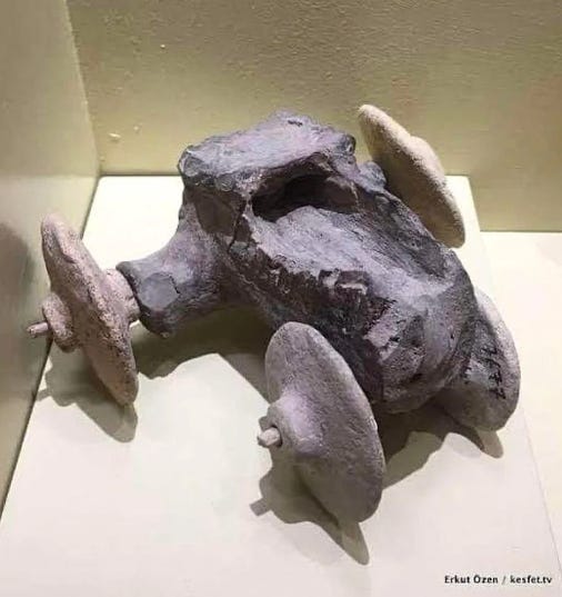 From the Mardin Museum in Turkey, excavated from a Chalcolithic era (post-Neolithic but pre-Bronze age) site in nearby Kiziltepe, what is thought by some to be the oldest surviving toy in the world… and it’s a car !